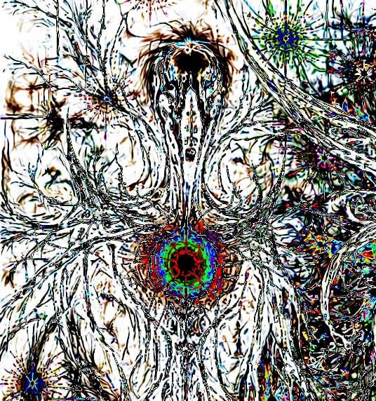 Así, lo demoniaco (el zumbido / el enjambre de moscas-demonio / xenomoscas) en tanto el afuera del afuera, no es funcional ni a esquemas ontogónicos o mitológicos (ya se trate de construcciones conceptuales humanas o esquemas bióticos “universales” que establecen un mecanismo de “funciones” en el sentido de “A es funcional a B”: el demonio es funcional a la vida, la psique, etc. como la muerte puede servir de conducto a nuevas generaciones; esas son sólo huevadas). De lo que se trata, valga el término, es del trayecto del demonio, más allá de sus fines arbitrarios. De lo demónico en sí, de una rara especie de persistencia en la “negatividad”.